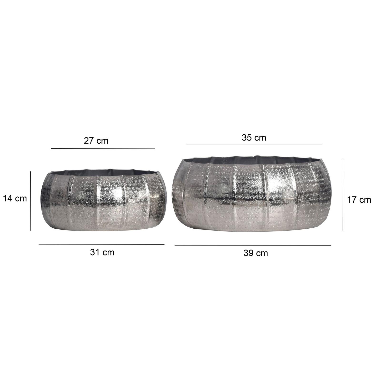 - Beide Metallpflanzgefäße bestehen aus massivem Aluminium, welches silberfarben lackiert ist.