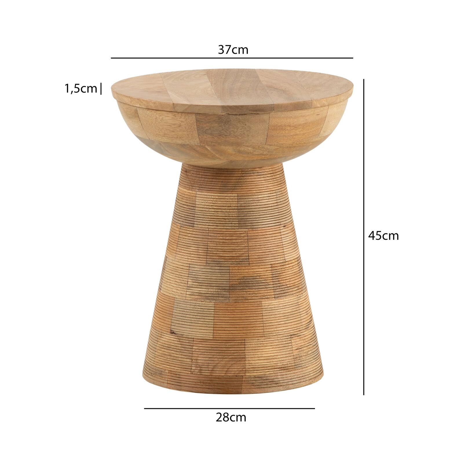 Mit den Maßen von 37 x 37 cm und einer Höhe von 45 cm bietet dieser Beistelltisch ausreichend Platz für verschiedenste Nutzungen, sei es als praktischer Abstelltisch neben dem Sofa, als stilvoller Nachttisch oder als dekoratives Möbelstück im Wohn- oder Esszimmer. Die Tischplatte ist etwa 1,5 cm stark und garantiert dadurch eine stabile und langlebige Nutzung.