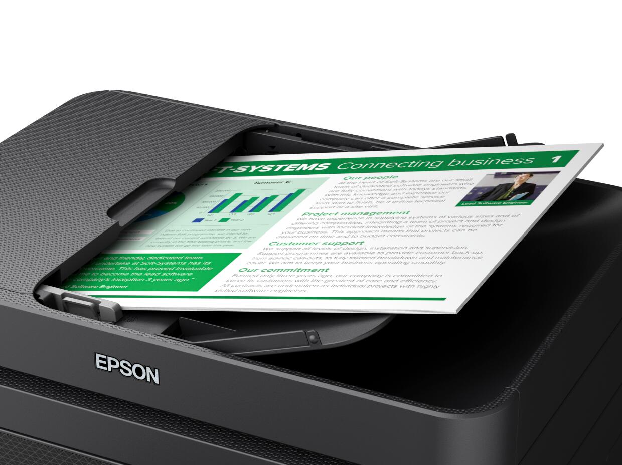 - Automatischer Dokumenteneinzug und beidseitiger Druck in DIN A4