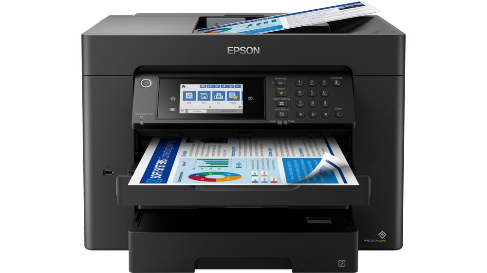Dieser DIN A3+ Multifunktionsdrucker erfüllt die Anforderungen der anspruchsvollsten Benutzer in Kleinbüros und im Home Office. Er bietet Funktionen für doppelseitiges Drucken, Scannen und Faxen – alles für Papierformate bis hin zu DIN A3. Sein automatischer Dokumenteneinzug (ADF) kann bis zu 50 doppelseitige DIN A3-Blätter verarbeiten. Außerdem sorgt sein PrecisionCore-Druckkopf für qualitativ hochwertige, laserscharfe Ausdrucke.