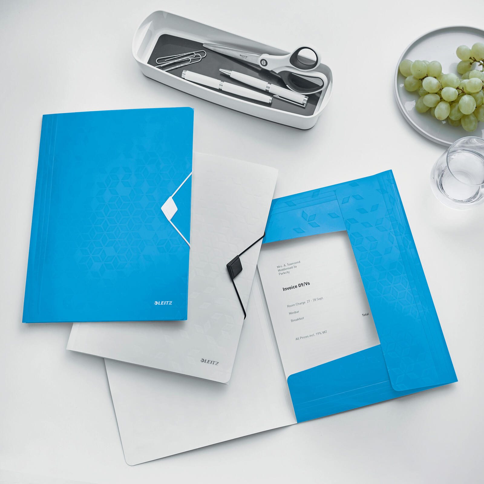 Die LEITZ Eckspanner WOW bu DIN A4 Mappen in Blau bieten nicht nur eine stilvolle Verpackung für deine Dokumente, sondern auch eine praktische Möglichkeit, sie sicher zu verstauen. Dank ihres Fassungsvermögens von bis zu 150 Blatt sind sie ideal für die Organisation und Präsentation deiner Unterlagen geeignet.