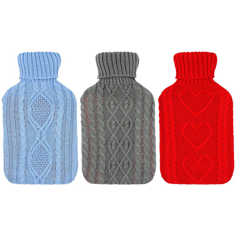 Besonders hervorzuheben sind die im Lieferumfang enthaltenen Stricküberzüge, die in drei stilvollen Farben und Designs – rot, blau und grau – erhältlich sind. Diese Überzüge erhöhen den Komfort bei der Nutzung, indem sie die Oberfläche der Wärmflasche angenehm weich machen und gleichzeitig vor direktem Hautkontakt mit dem heißen Gummi schützen. Somit wird ein sicheres und angenehmes Wärmeerlebnis gewährleistet.