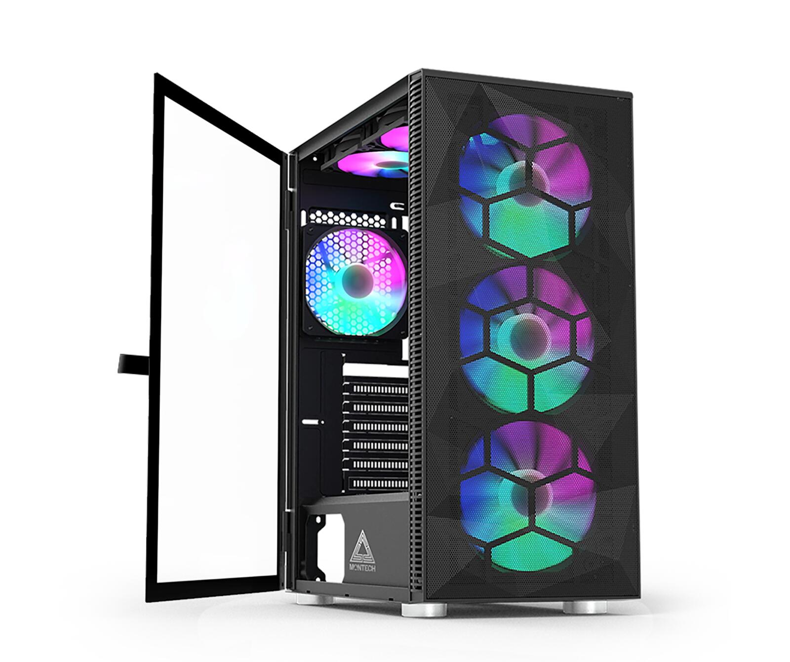 Das Montech X3 verfügt über eine Panorama-Seitenwand aus gehärtetem Glas, sodass Sie Ihr Kampfsystem und die RGB-Beleuchtung problemlos präsentieren können.