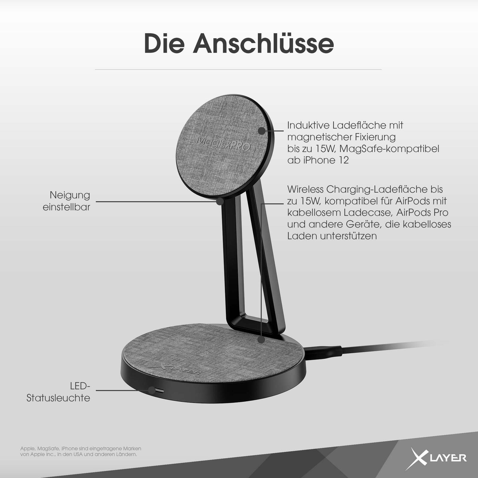XLAYER MagFix Pro 2 in 1 Induktive Ladestation schwarz, 15 Watt