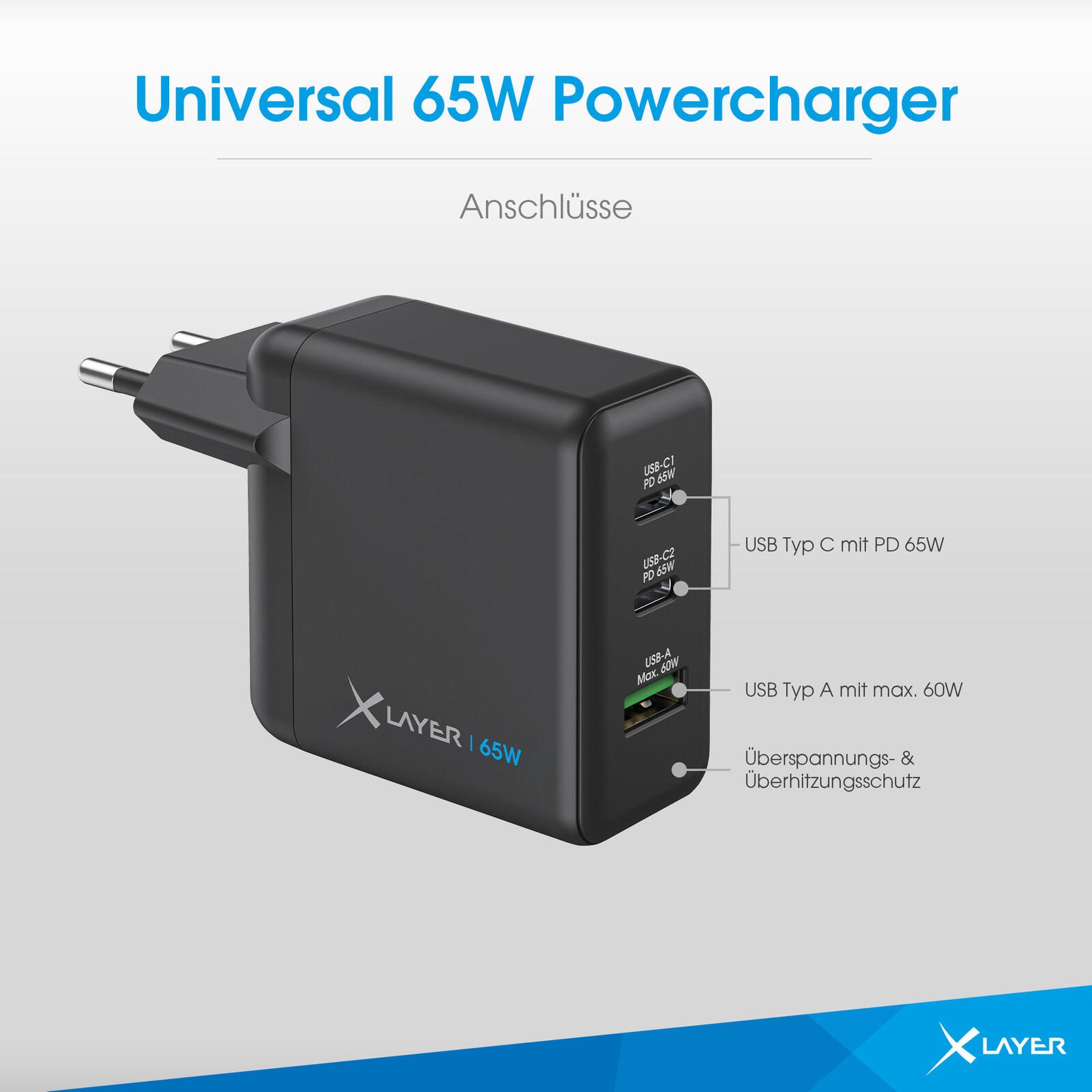 XLAYER Powercharger 65W Ladeadapter schwarz, 65 Watt