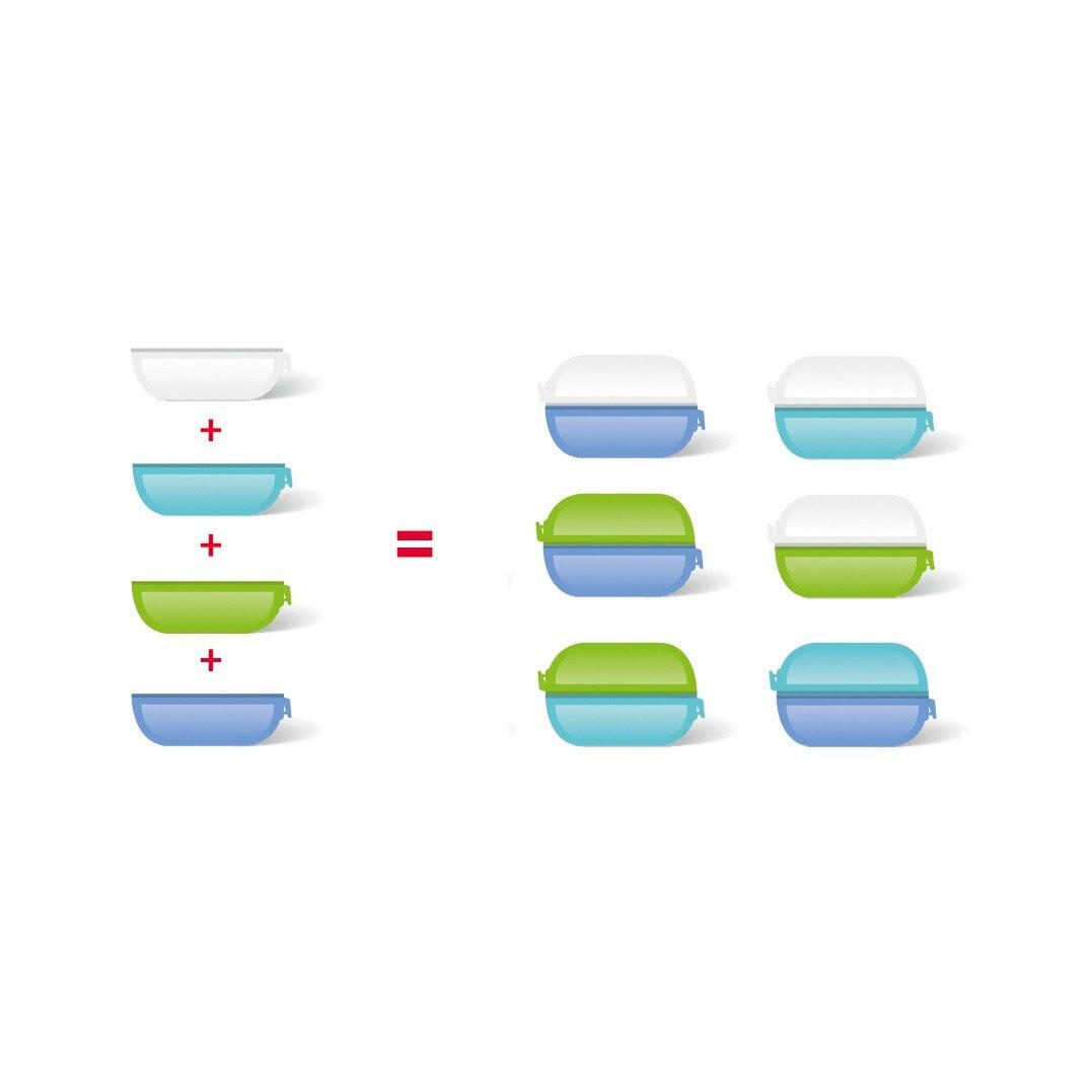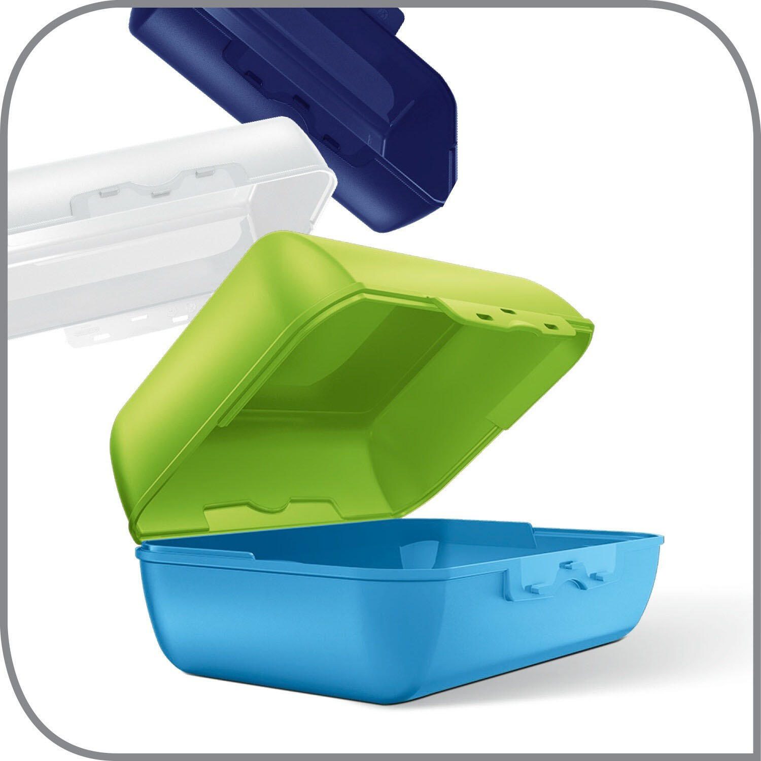 Die Variabolo Clipboxen in Blau und Grün sind die idealen Begleiter für unterwegs. Die Halbschalen der Boxen sind unterschiedlich kombinierbar und praktisch ineinander stapelbar, was sie besonders platzsparend macht. Dank der cleveren Konstruktion sind sie beidseitig zu öffnen, was die Handhabung erleichtert.