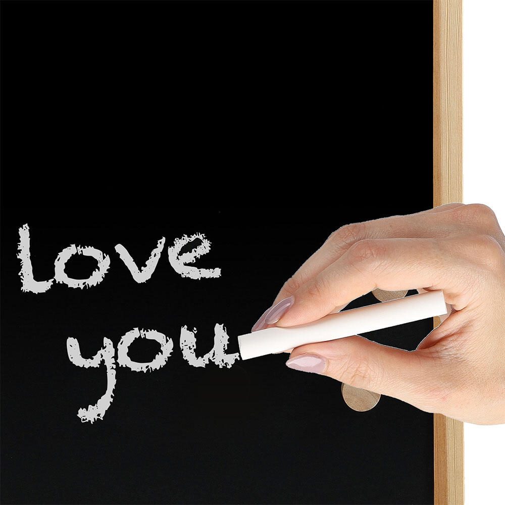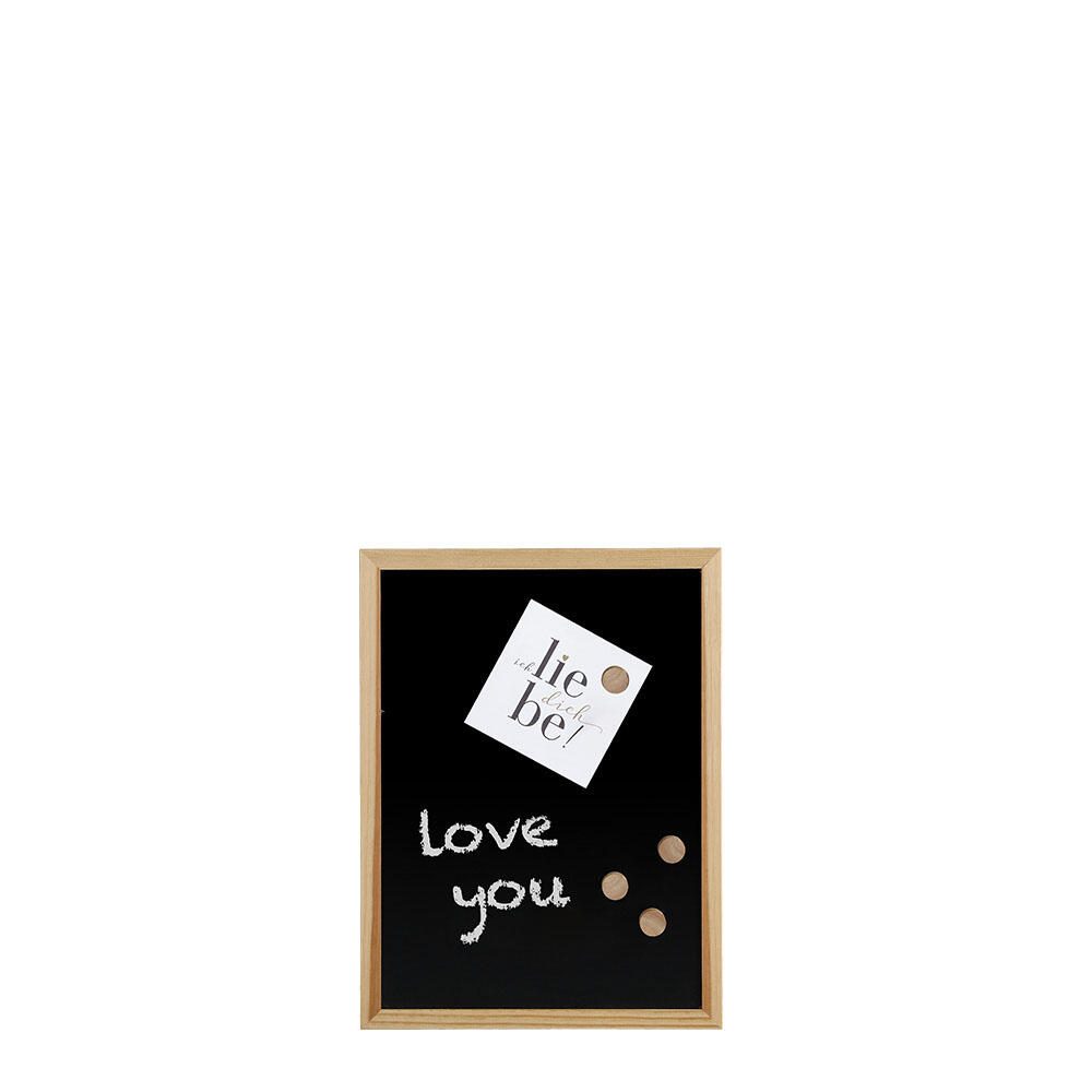 Die Zeller Kreidetafel in der Größe 40 x 30 cm ist eine stilvolle und praktische Ergänzung für jedes Zuhause oder Büro. Ihre elegante schwarze Oberfläche aus beschichtetem Kunststoff bietet nicht nur eine ansprechende Optik, sondern ist auch besonders funktional. Diese Kreidetafel ist sowohl beschreibbar als auch magnethaftend, was dir vielseitige Nutzungsmöglichkeiten eröffnet. Du kannst sie zum Schreiben von Notizen, Erinnerungen oder kreativen Ideen verwenden und gleichzeitig wichtige Dokumente oder Bilder mit Magneten befestigen. Die Zeller Kreidetafel ist so konzipiert, dass sie sowohl im Hochformat als auch im Querformat montiert werden kann. Dies ermöglicht dir eine flexible Anbringung an der Wand, je nachdem, was am besten in deinen Raum passt. Der Holzrahmen verleiht der Tafel eine robuste Stabilität und sorgt dafür, dass sie sich harmonisch in jede Einrichtung einfügt. Mit einem praktischen Aufhänger ausgestattet, lässt sich die Tafel mühelos anbringen und wieder abnehmen. Dank der kompakten Größe von 40 x 30 cm findet die Kreidetafel auch in kleineren Räumen ihren Platz, ohne dabei aufdringlich zu wirken. Ob in der Küche, im Kinderzimmer oder im Büro – die Zeller Kreidetafel bietet dir eine hervorragende Möglichkeit, Gedanken und Ideen festzuhalten und kreativ zu sein. Die hochwertige Verarbeitung und das durchdachte Design machen diese Kreidetafel zu einem unverzichtbaren Accessoire für jeden, der gerne organisiert bleibt oder seine Kreativität ausleben möchte. Die Zeller Kreidetafel ist nicht nur funktional, sondern auch ein stilvolles Element, das deinen Raum bereichert.Technische Daten