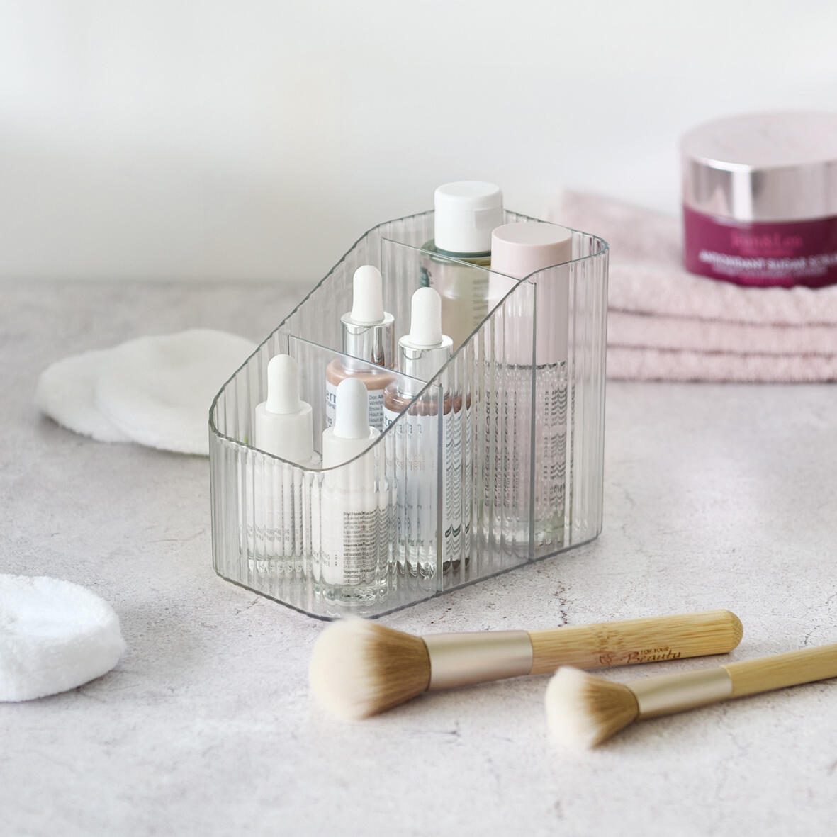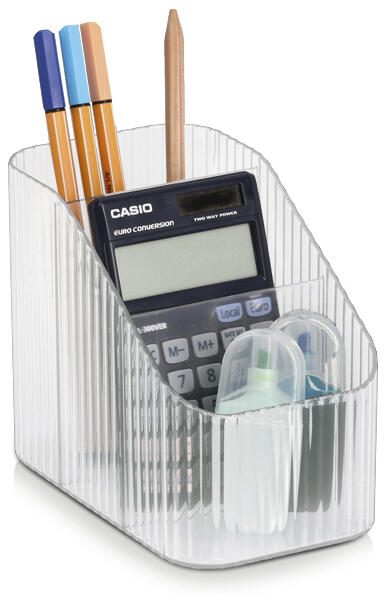 Der Zeller Schreibtisch-Organizer ist ein praktisches Aufbewahrungsfach aus transparentem Kunststoff. Er bietet drei separate Fächer, die ausreichend Platz für verschiedene Büroutensilien wie Stifte, Notizzettel oder kleine Zubehörteile bieten. Mit seinen kompakten Maßen von 15,0 cm Breite, 9,0 cm Tiefe und 12,0 cm Höhe passt der Organizer auf jeden Schreibtisch, ohne viel Platz einzunehmen.
