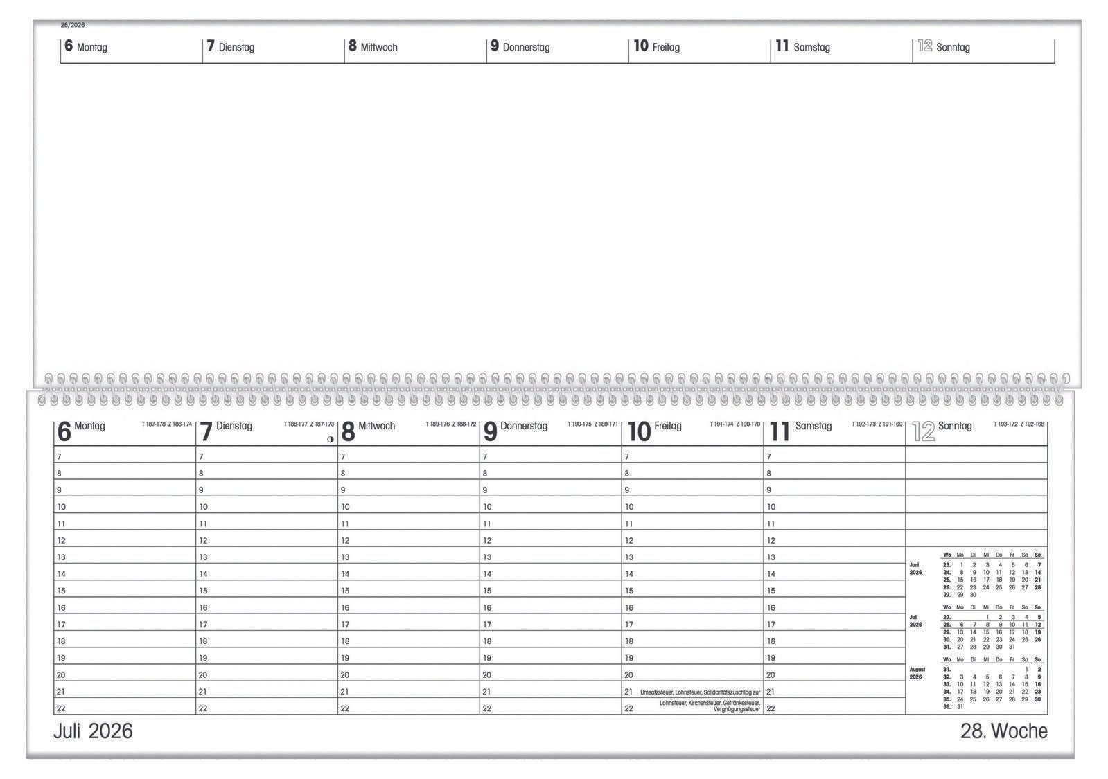 Der ZETTLER KALENDER Tischquerkalender Giganta XXL 2026 ist ein großformatiger Kalender, der sich durch seine übersichtliche Gestaltung und stabile Verarbeitung auszeichnet. Mit den Maßen von 42,2 x 14,8 cm bietet er ausreichend Platz für eine klare und gut lesbare Darstellung der einzelnen Tage und Wochen. Die Spiralbindung oben ermöglicht ein einfaches Umblättern und sorgt für eine dauerhafte Haltbarkeit des Kalenders.