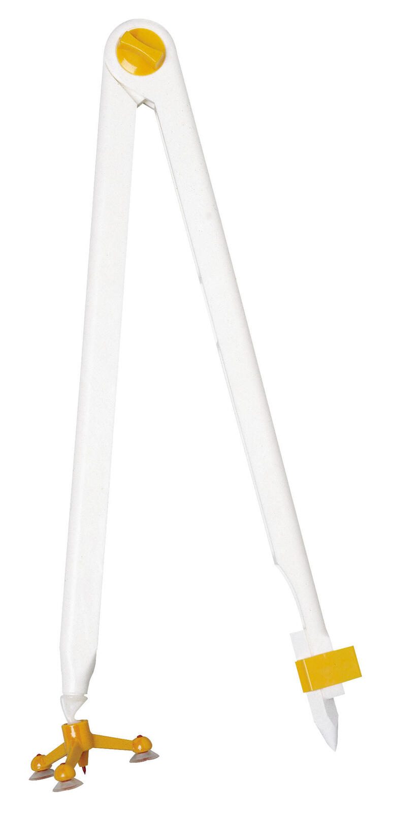 Der ARISTO Tafelzirkel in elegantem Weiß ist ein unverzichtbares Werkzeug für Schüler, Studenten und kreative Köpfe, die präzise Zeichnungen und geometrische Formen erstellen möchten. Mit seinem ansprechenden Design und der hochwertigen Verarbeitung aus Kunststoff bietet dieser Zirkel nicht nur Funktionalität, sondern auch eine ansprechende Ästhetik auf deinem Tisch. Der Tafelzirkel ist mit einer praktischen Feststellschraube ausgestattet, die eine einfache und sichere Handhabung ermöglicht. So kannst du die Einstellung schnell und unkompliziert fixieren, um exakte Kreise mit einem Durchmesser von bis zu 60 cm zu zeichnen. Die Verwendung von Kunststoff sorgt dafür, dass der Zirkel leicht und dennoch robust ist, was ihn ideal für den täglichen Einsatz in Schule oder Studium macht. Ein weiteres Highlight ist die Lieferung, die zusätzlich Saugnäpfe beinhaltet. Diese Saugnäpfe sorgen für einen stabilen Halt des Zirkels auf glatten Oberflächen, sodass du dich voll und ganz auf deine Zeichnungen konzentrieren kannst, ohne dass der Zirkel verrutscht. Der ARISTO Tafelzirkel in Weiß ist nicht nur funktional, sondern auch stilvoll und passt hervorragend in jede Umgebung. Ob im Klassenzimmer, im Atelier oder zu Hause – er ist der perfekte Begleiter für alle, die Wert auf Präzision und Design legen. Mit diesem Zirkel wird das Zeichnen zu einem angenehmen Erlebnis, das sowohl Freude als auch Kreativität fördert.Technische Daten